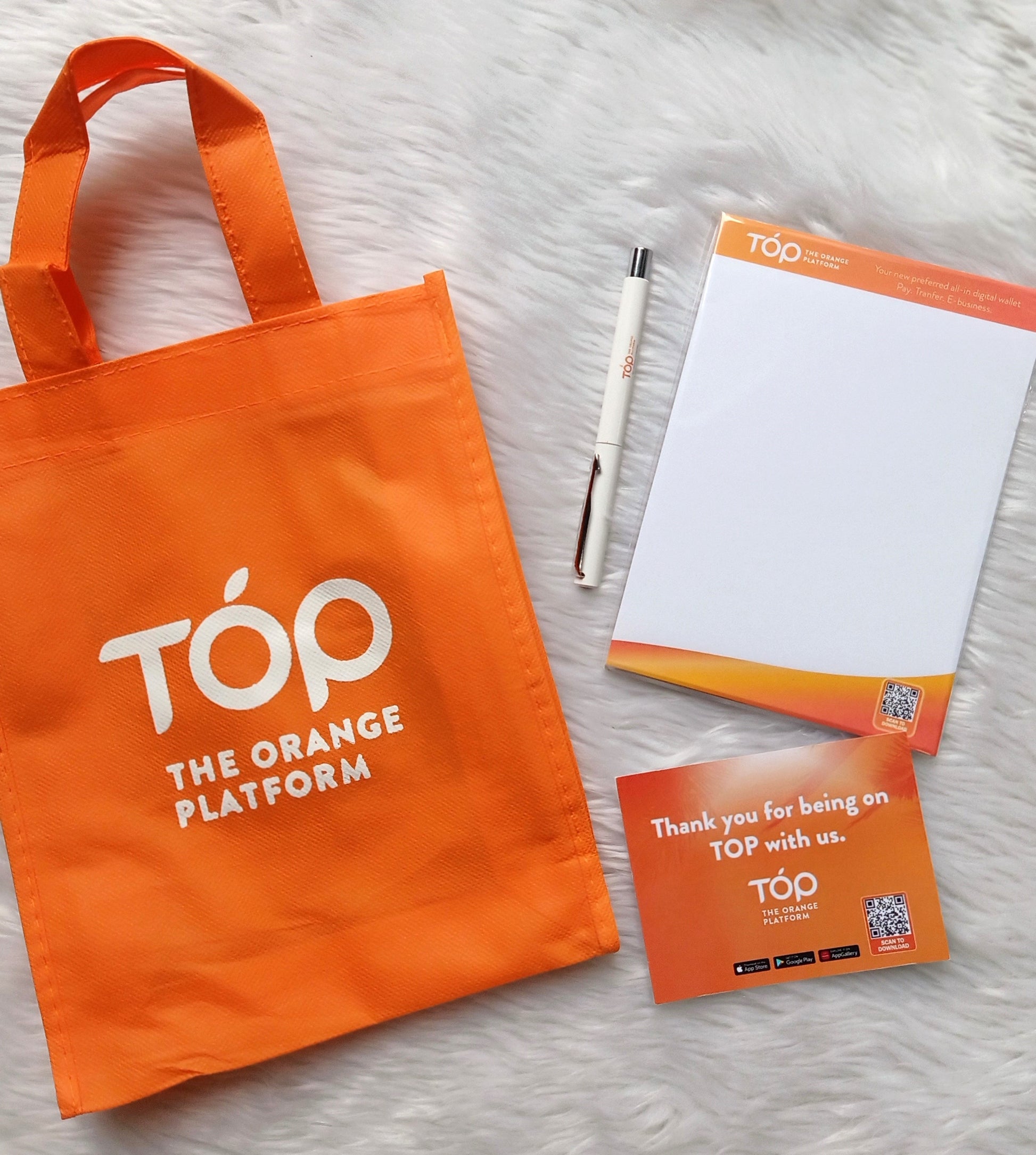 Made for The Orange Platform, these bags were made as a budget option for giveaways at a company outing. Each eco bag includes a custom note pad, a custom pen, and a note card.