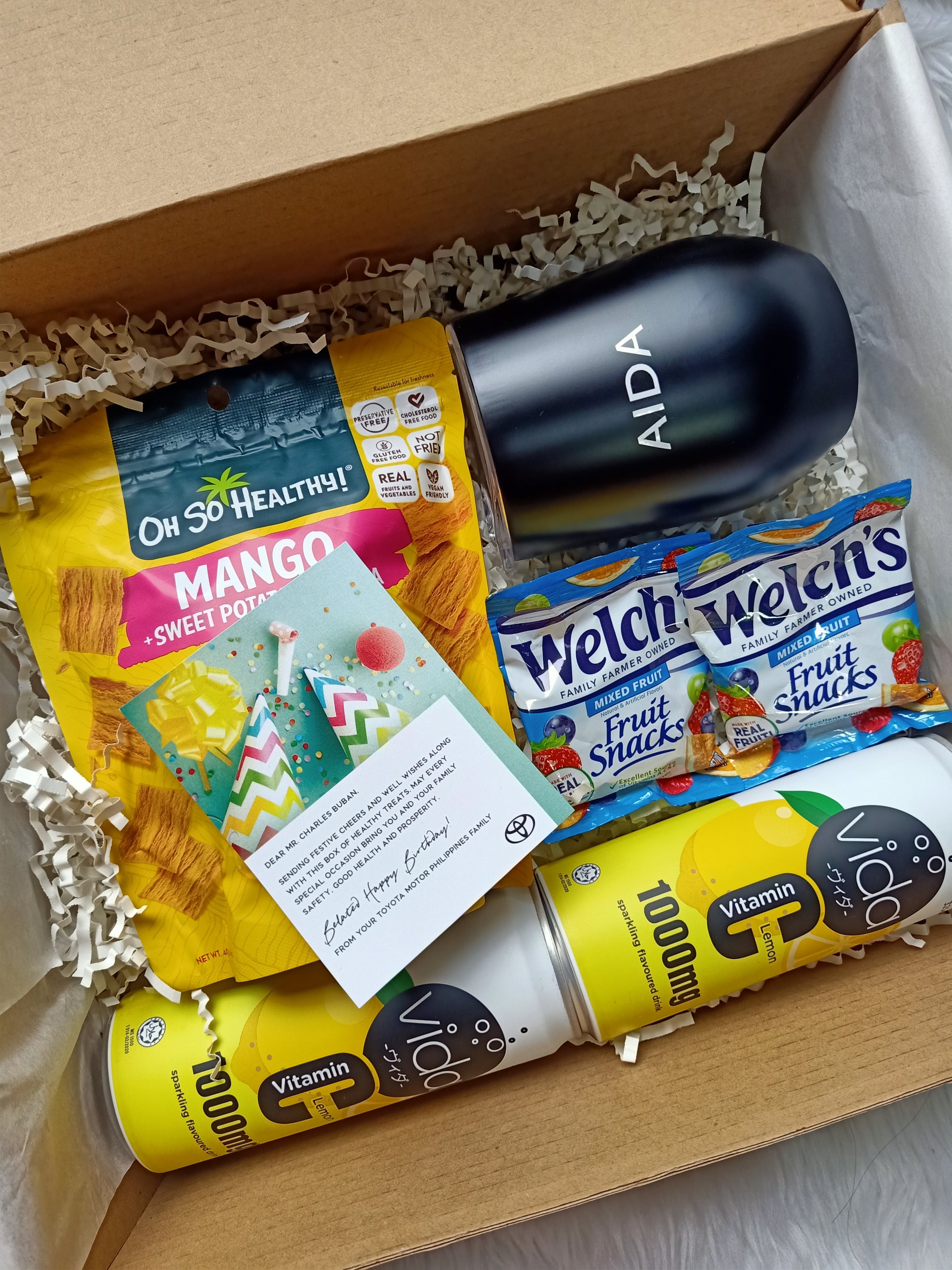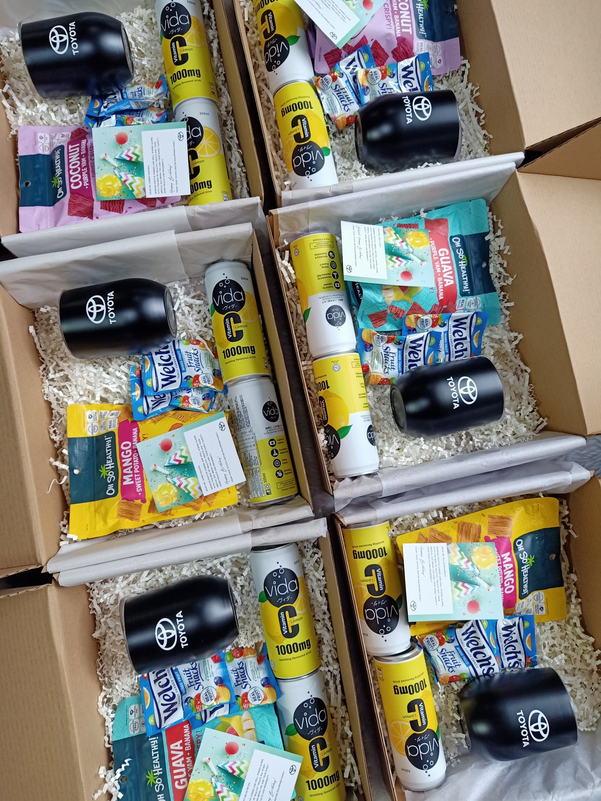 Sending well wishes and birthday greetings through fruity snacks! These were given monthly to Toyota's friends and partners.