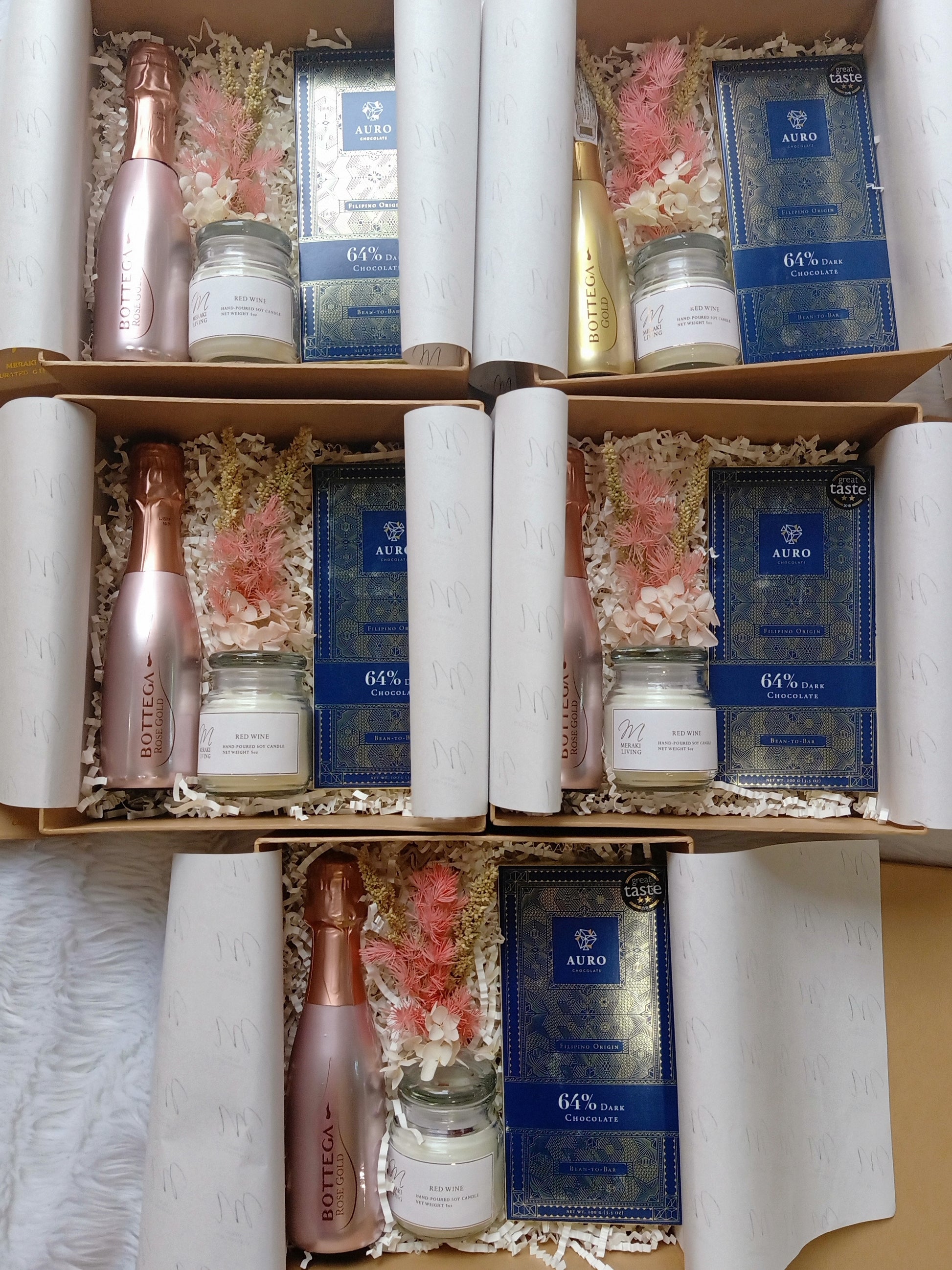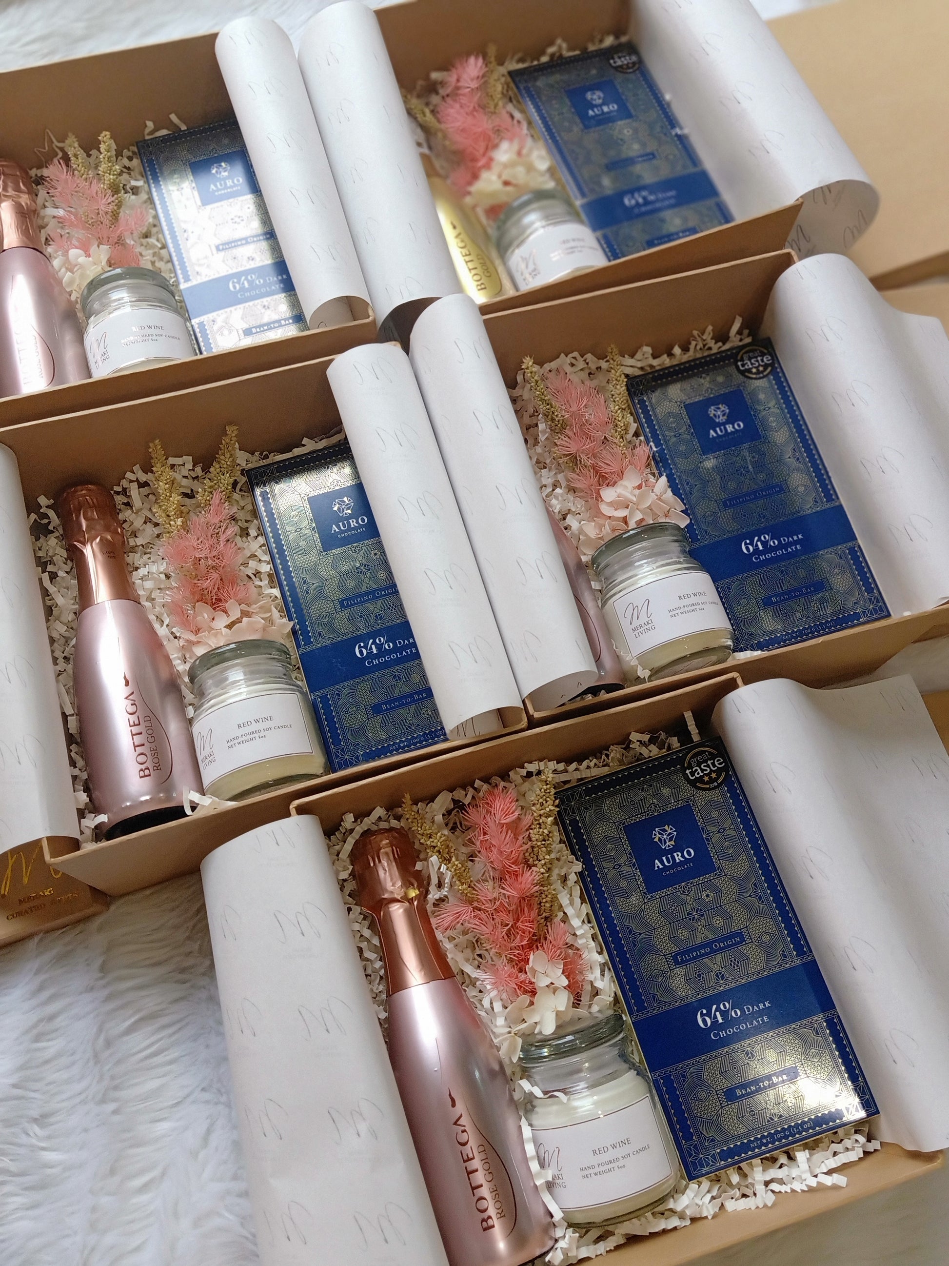 Made for a mommy, mama, auntie, and titas! This is a simple token of appreciation for all the hard work and guidance they have put into us. Includes Mini Wine, Auro Chocolate, and a mini soy candle.